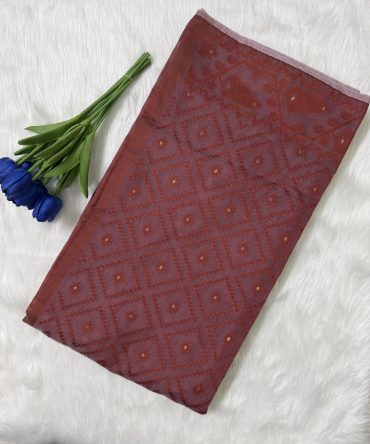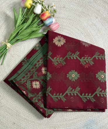 হাফ সিল্ক জামদানি শাড়ি – ডিপ মেরুন