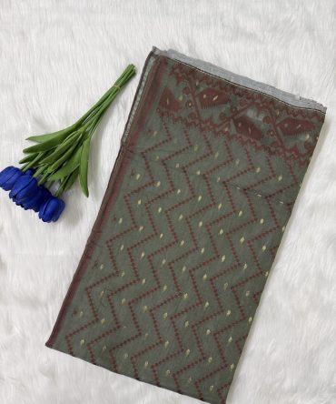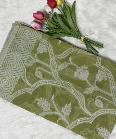খাদি জামদানি শাড়ি – অলিভ গ্রীন