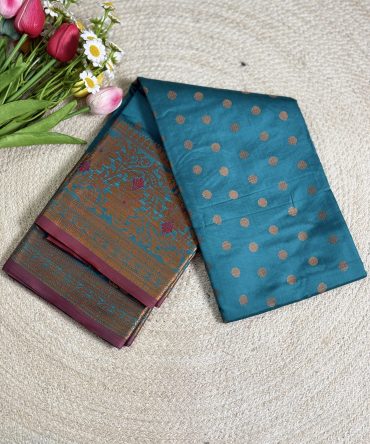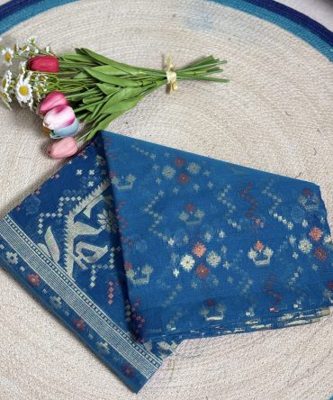 টাঙ্গাইল কাতান শাড়ি – ময়ূর নীল