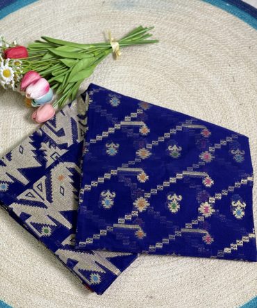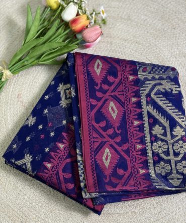 হাফ সিল্ক জামদানি শাড়ি – গাড় নীল