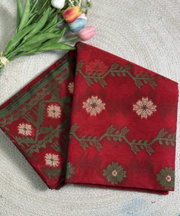 হাফ সিল্ক জামদানি শাড়ি – লাল