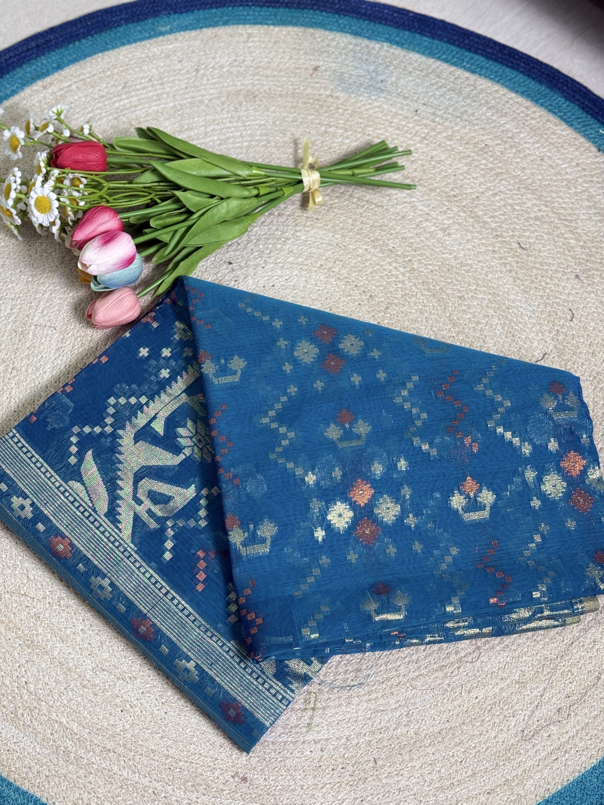 জরোয়া জামদানি শাড়ি – ময়ূর নীল