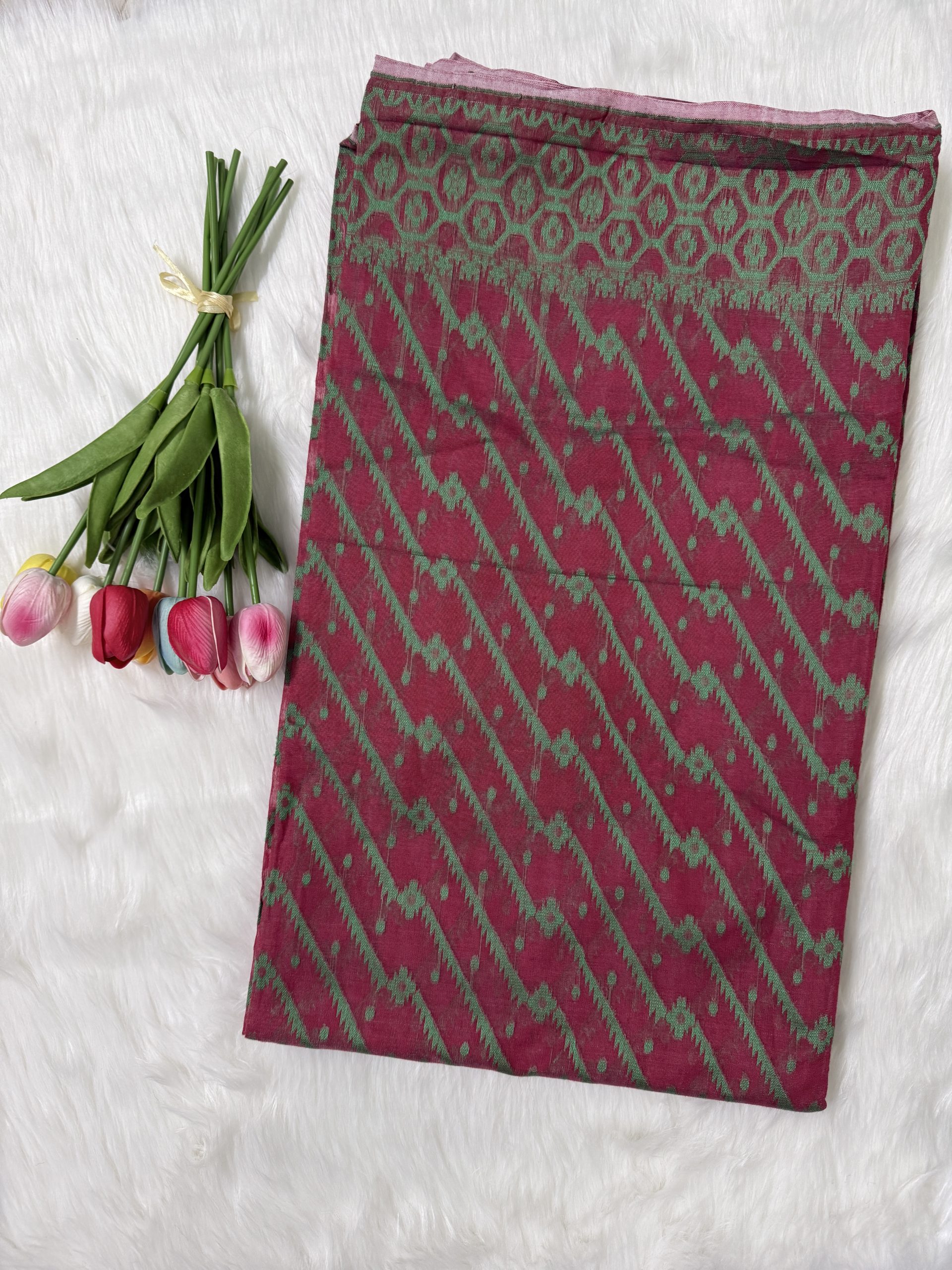 🛍️ স্টক সীমিত—আজই অর্ডার করুন, আপনার কালেকশনে যোগ করুন এই এলিগ্যান্ট Deep Magenta Khadi Jamdani Sharee!