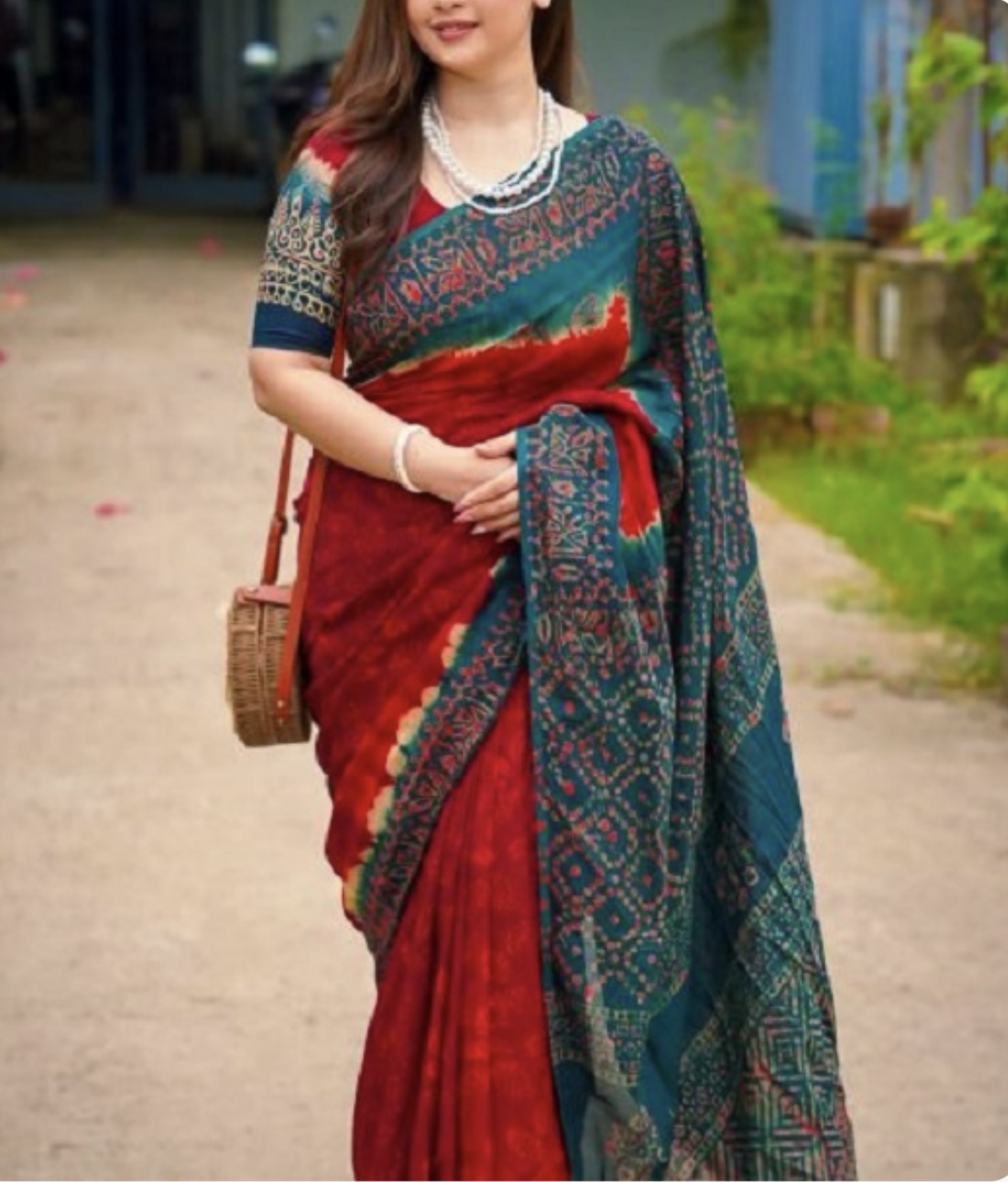 ব্লাউজ পিস: শাড়িটির সাথে ম্যাচিং করা স্টাইলিশ ব্লাউজ পিস রয়েছে।