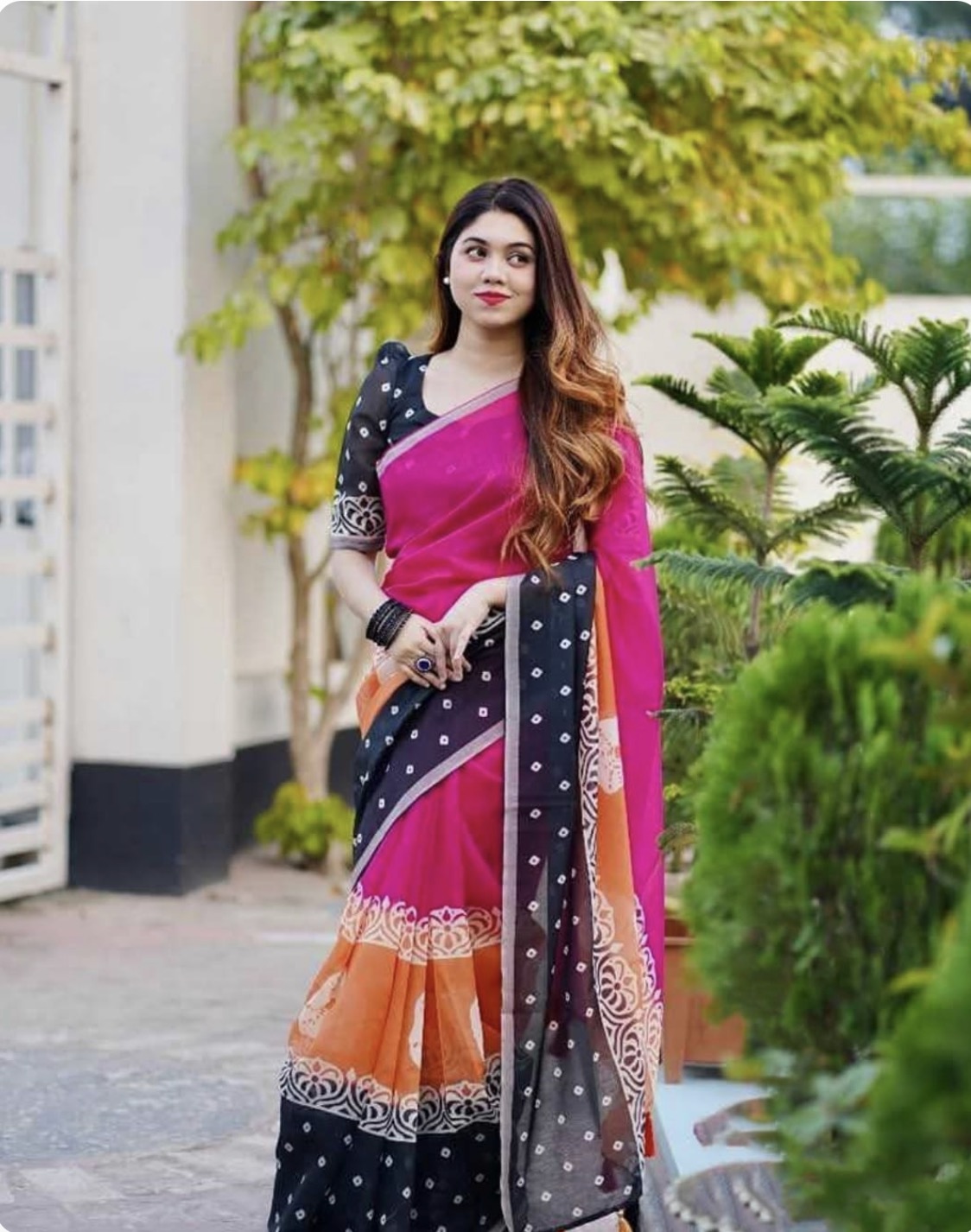 ব্লাউজ পিস: শাড়িটির সাথে ম্যাচিং করা স্টাইলিশ ব্লাউজ পিস অন্তর্ভুক্ত রয়েছে (ছবির মতো)।